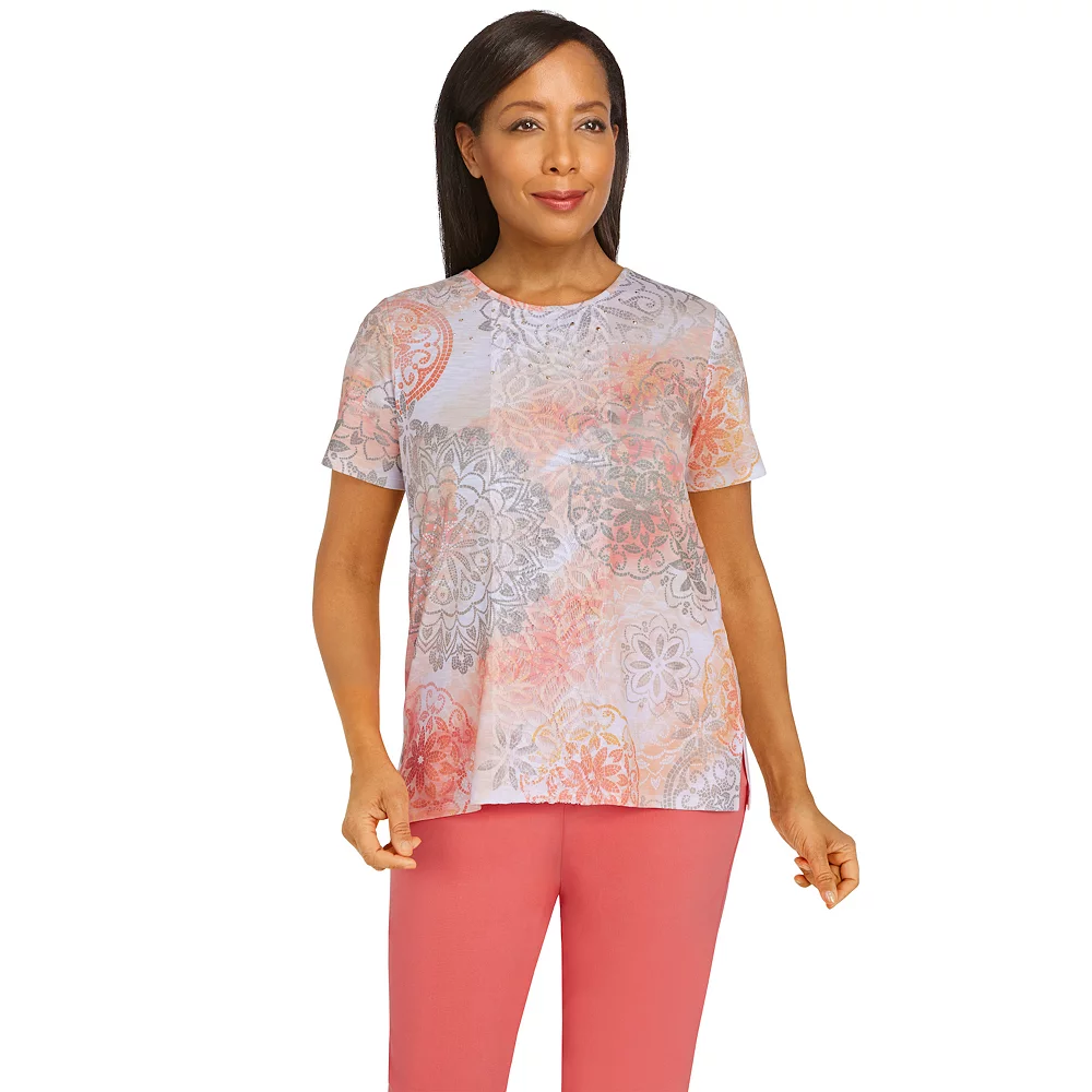 This women’s petite top from Alfred Dunner is sure to brighten your day.