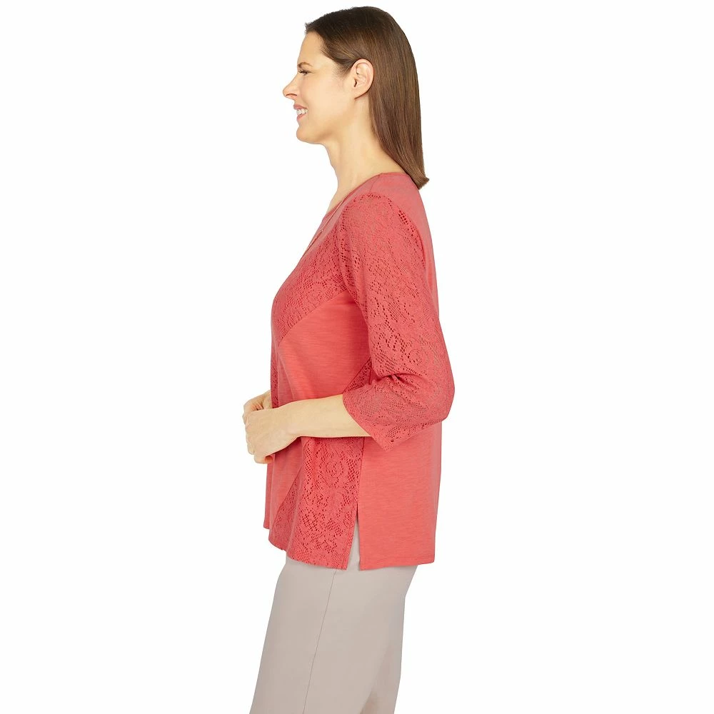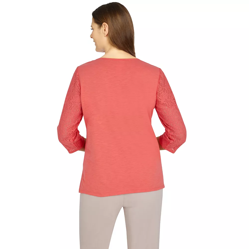 This women’s petite top from Alfred Dunner is spliced to perfection.