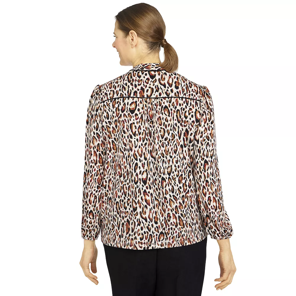This women’s petite top from Alfred Dunner gives your wardrobe a refined exotic flair.