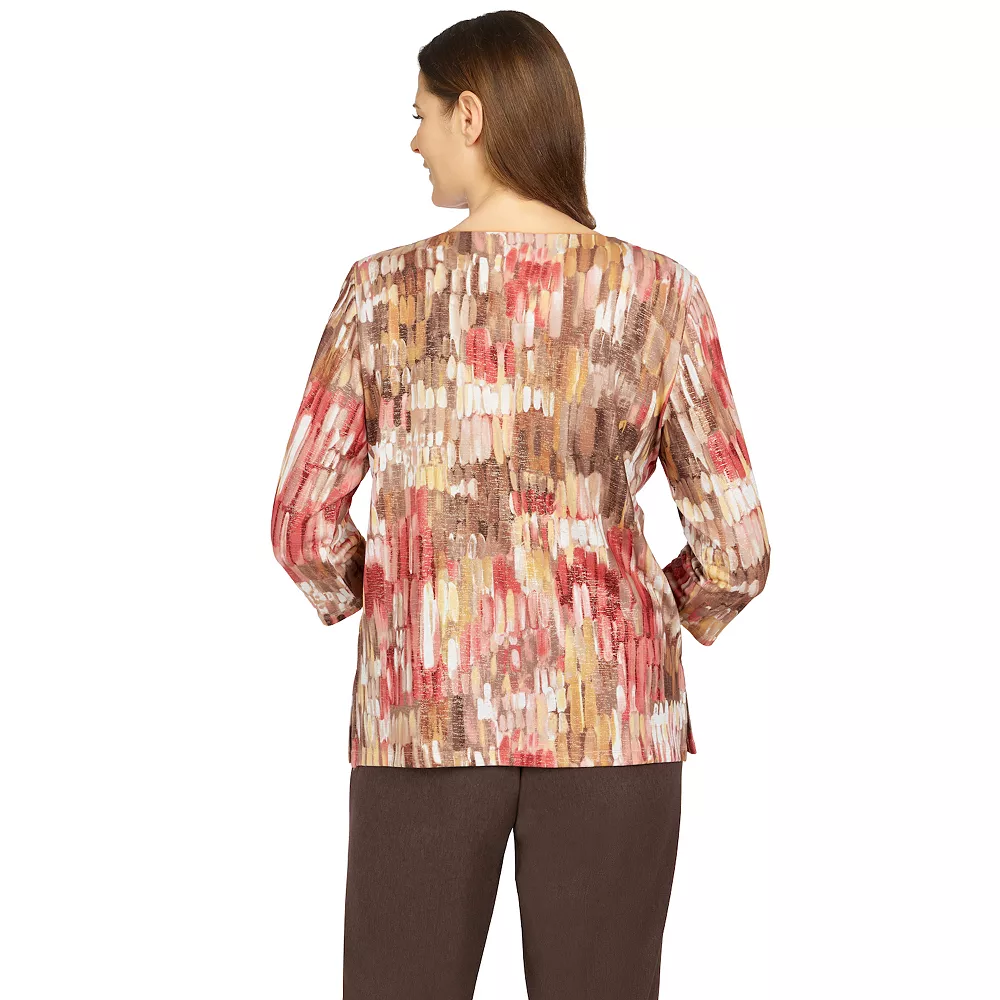The metallic allover shimmer adds a touch of glamour to this women’s top from Alfred Dunner.