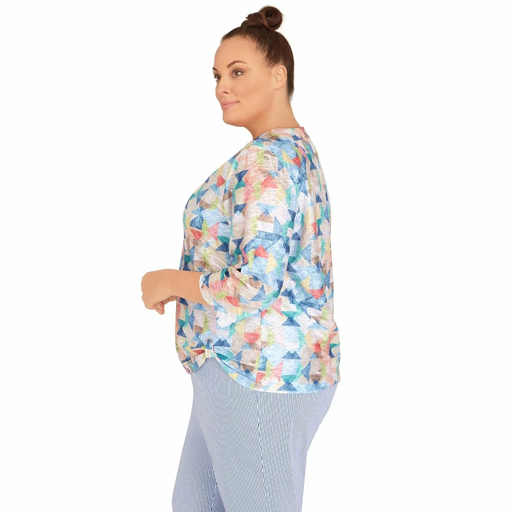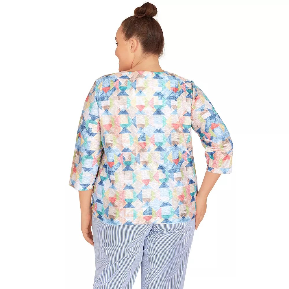 Plus Size Alfred Dunner Peace of Mind Geometric Texture Grommet Hem Top