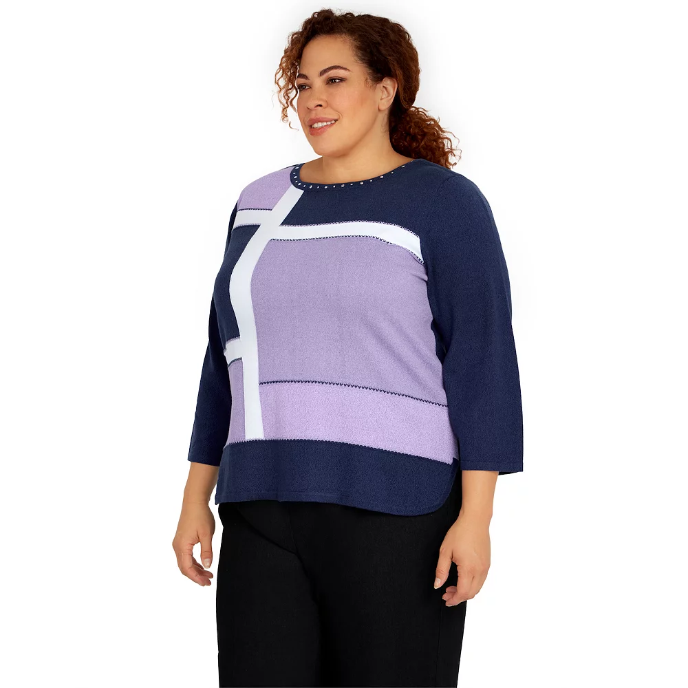 This women’s sweater from Alfred Dunner gives a casual yet modern aesthetic.