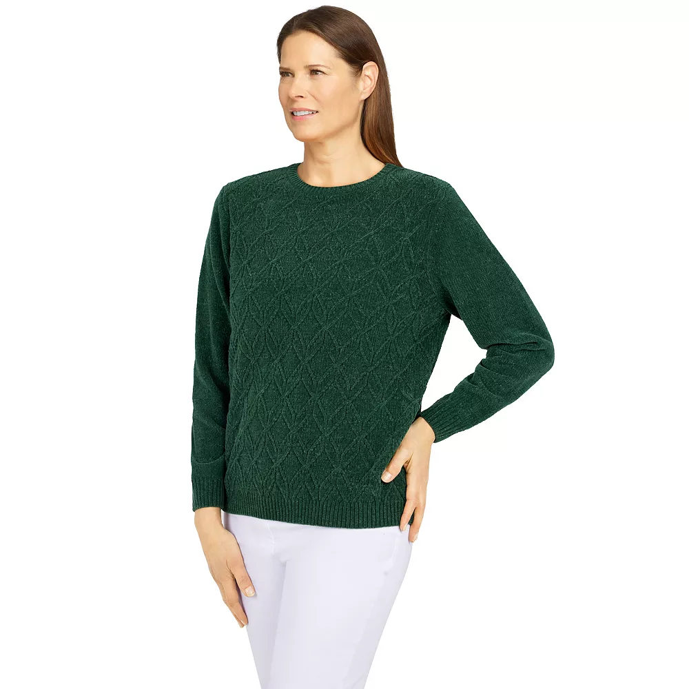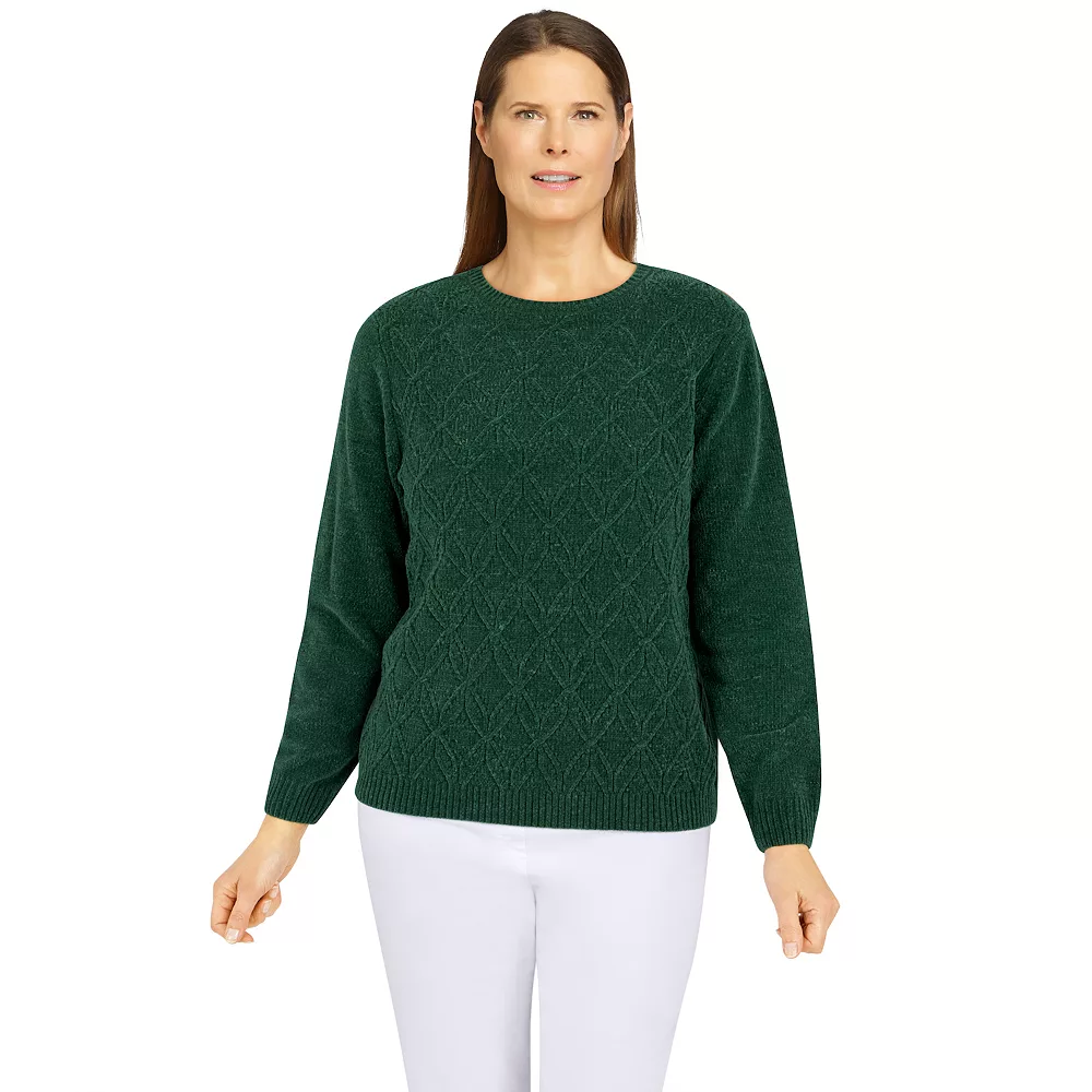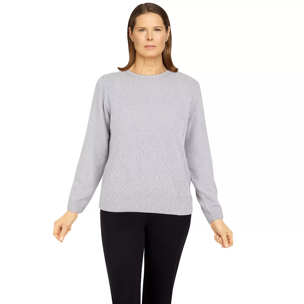 The cable stitching on this women’s top from Alfred Dunner lends an alluring dimensional look that completes this crewneck style.