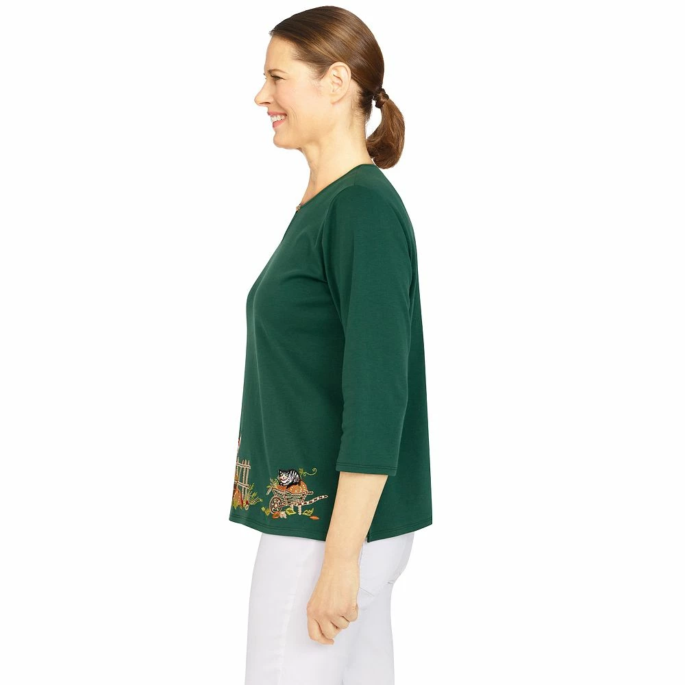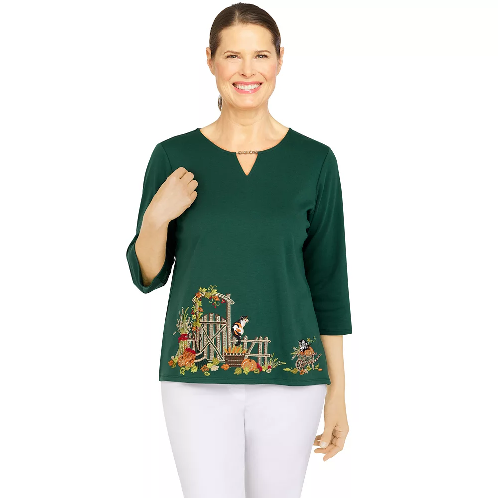 A perfect harvest day is captured on this women’s top from Alfred Dunner.