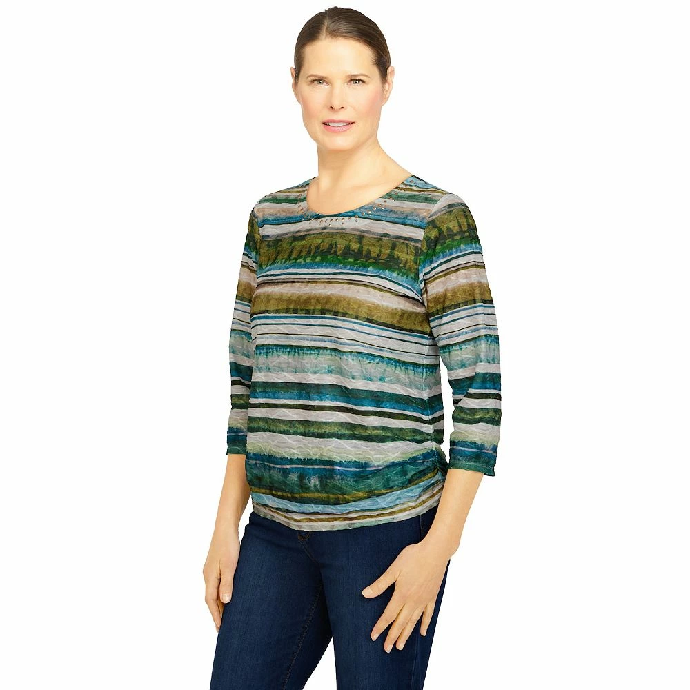 A textural surprise on this women’s top from Alfred Dunner makes this style trendy.