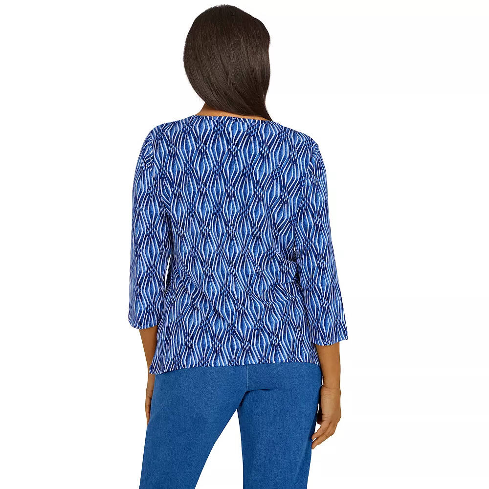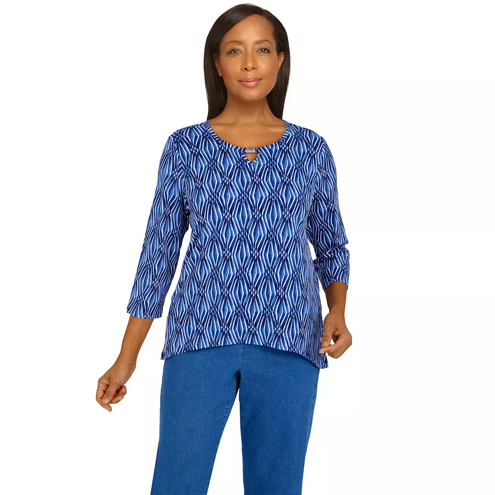 A diamond texture accentuates the subtle puff print details on this women’s top from Alfred Dunner.