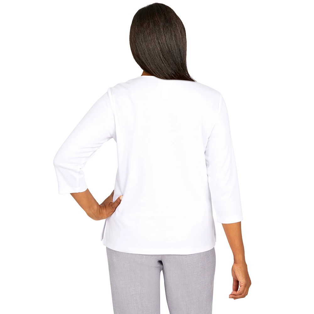 Stand out with this beautifully embroidered women’s top from Alfred Dunner.