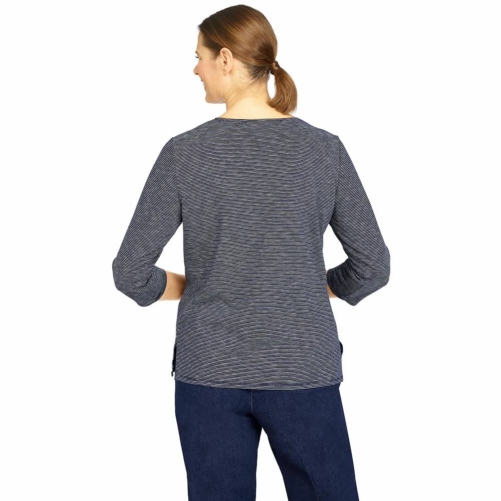 Intricate embroidery at the neck and border feminize this women’s top from Alfred Dunner.