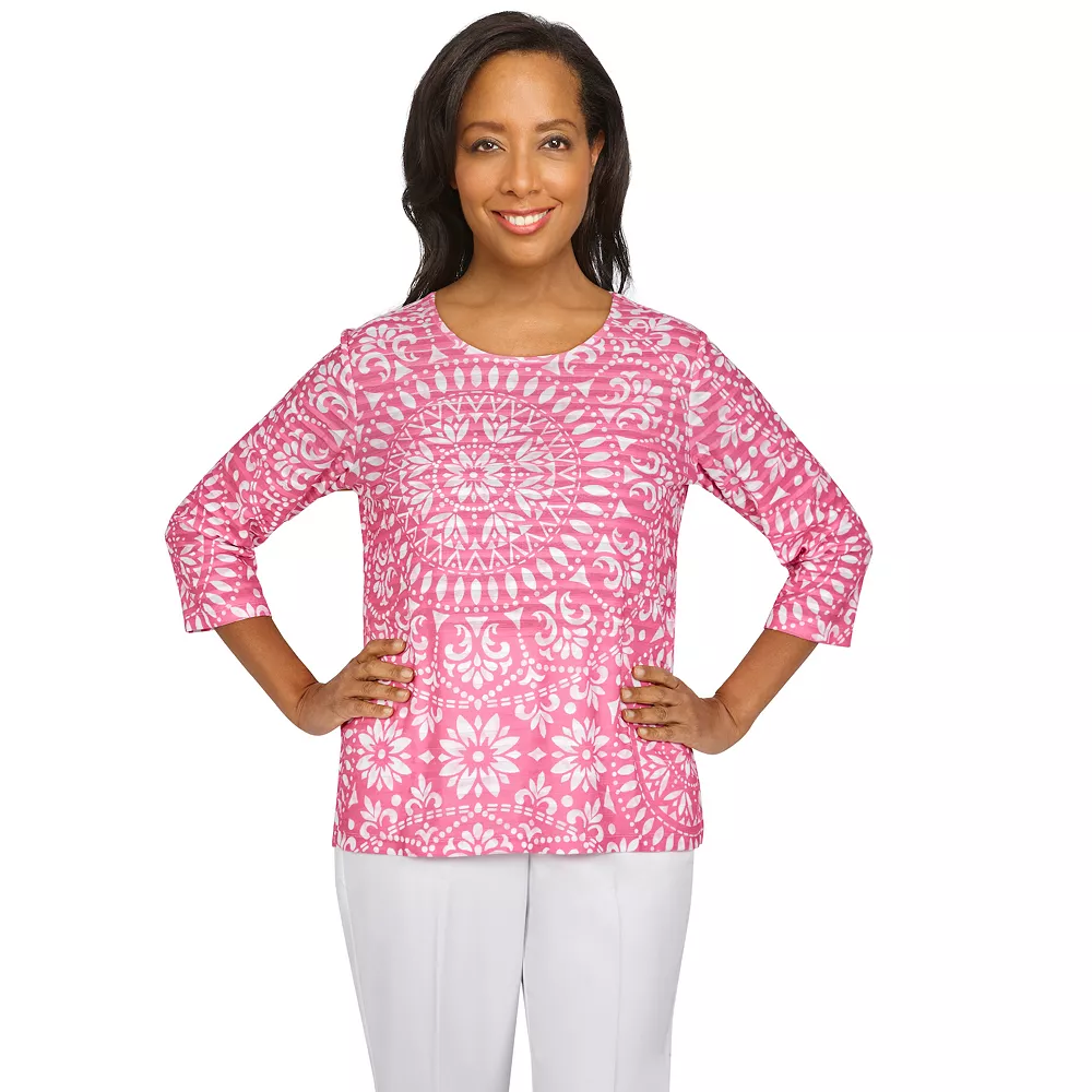 Feminine and flattering, this women’s top from Alfred Dunner is love at first wear.