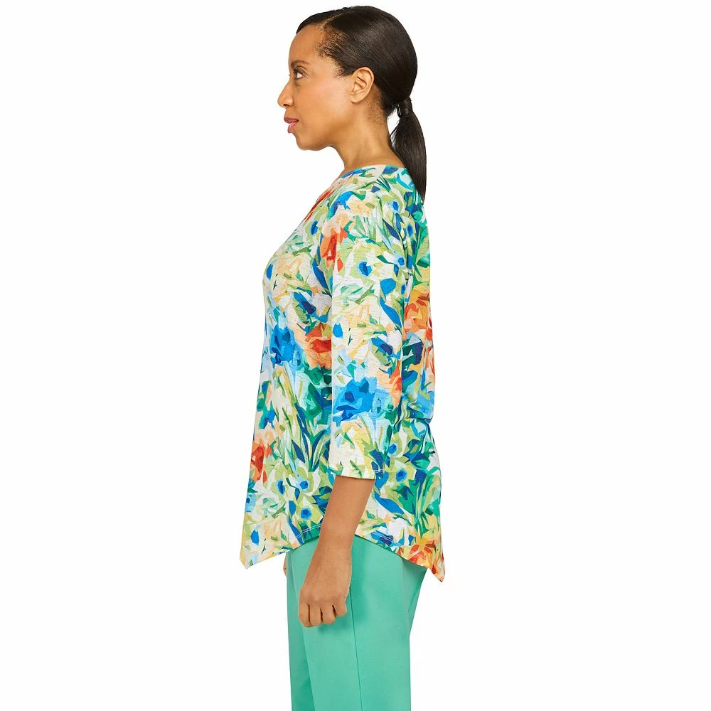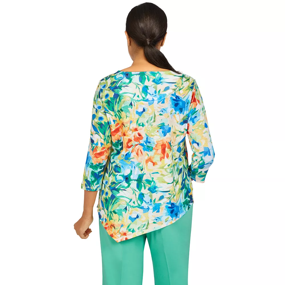 Take your casual style in an abstract-inspired direction with this beautiful Alfred Dunner floral printed women’s top.