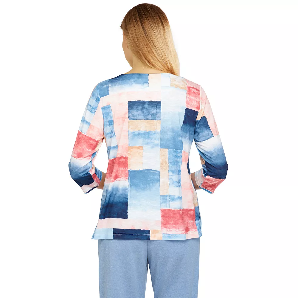 You’ll want to keep this soft watercolor patchwork print women’s top from Alfred Dunner in the front of your closet!