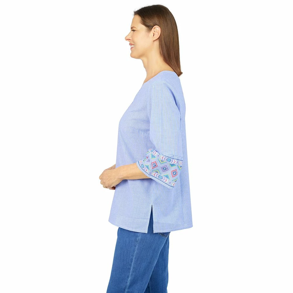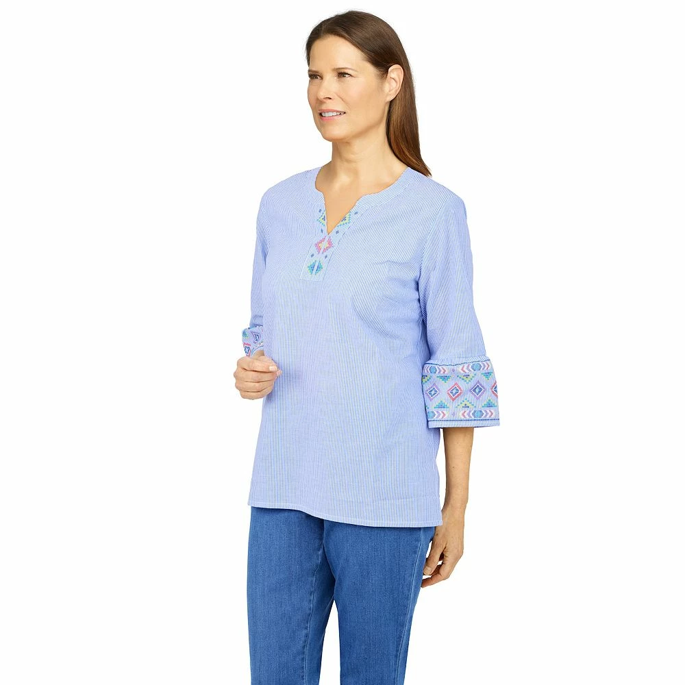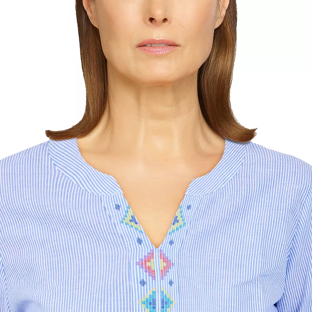 This women’s pinstripe shirt from Alfred Dunner goes perfectly with denim.